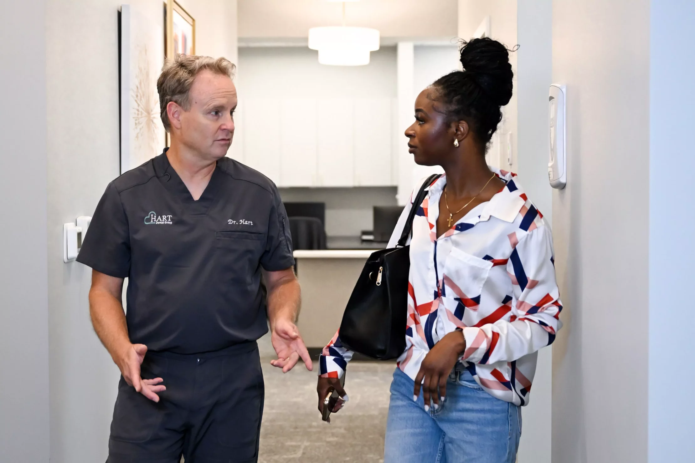When you first visit Hart Dental Group, you will be greeted by our friendly and welcoming staff. They will help you check in and get comfortable in our waiting room. Once your appointment time arrives, you will be taken to a private exam room where you will meet with your dentist or hygienist.